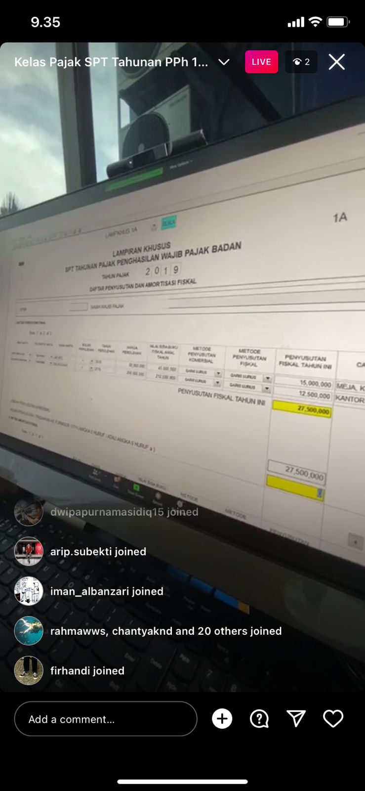 Kelas pajak kali ini berlangsung interaktif karena banyak wajib pajak yang ingin melaporkan SPT Tahunan, tetapi terkendala kode verifikasi yang belum terkirim ke email terdaftar maupun kesulitan membuat laporan keuangan.