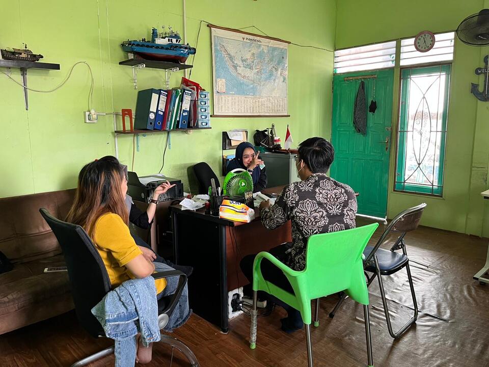 Petugas Seksi Pelayanan Kantor Pelayanan Pajak (KPP) Pratama Samarinda Ulu Filipus Kelvin Moses Pasaribu dan Sheilna Nabiila Habib mengunjungi tempat kegiatan usaha wajib pajak di Jalan H. Hajrah, Sungai Keledang, Samarinda Seberang, Kota Samarinda (Selasa, 4/10). Tujuan survei kali ini untuk memastikan keberadaan wajib pajak dan kegiatan yang mereka lakukan dalam rangka pengukuhan Pengusaha Kena Pajak (PKP) yang diajukan.