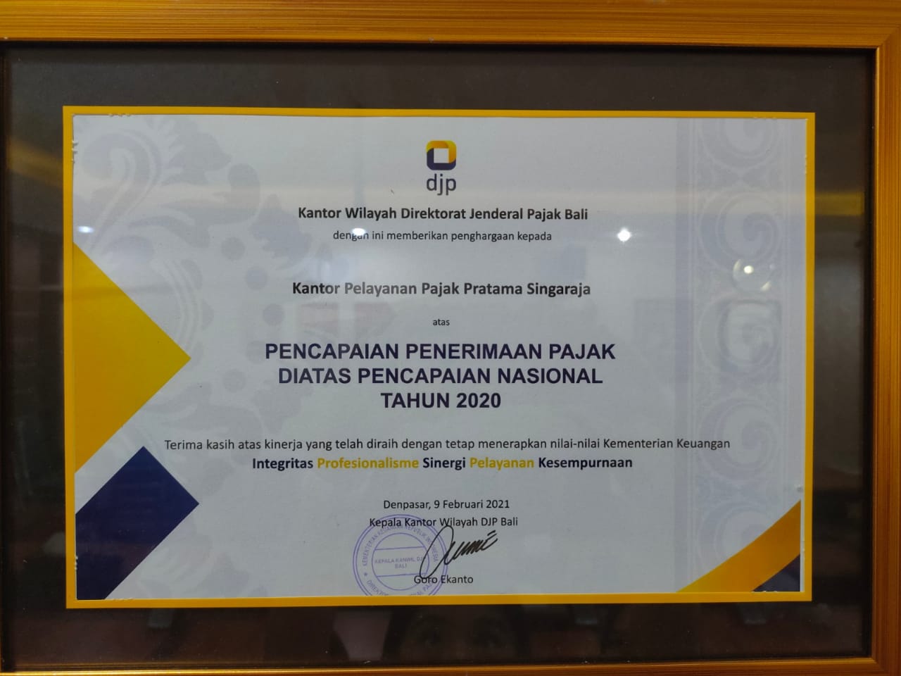 Kantor Pelayanan Pajak (KPP) Pratama Singaraja berhasil memperoleh dua penghargaan dari Kanwil DJP Bali atas kinerjanya dalam pencapaian penerimaan pajak diatas pencapaian nasional tahun 2020 dan tingkat pertumbuhan realisasi pajak di atas pertumbuhan nasional tahun 2020. Penghargaan tersebut diberikan seusai acara Rapat Koordinasi Daerah I Kantor Wilayah DJP Bali yang bertempat di ruang aula Kanwil DJP Bali (Selasa, 9/2).