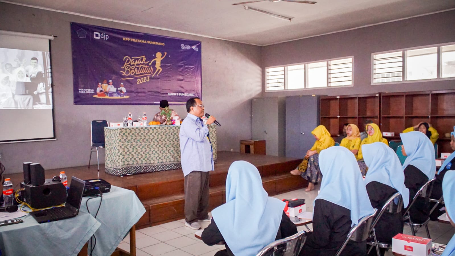 Kantor Pelayanan Pajak (KPP) Pratama Sumedang  menggelar acara Pajak Bertutur 2023 di Sekolah Menengah Kejuruan Negeri (SMKN) 2 Sumedang,  Kotakaler, Kabupaten Sumedang, Jawa Barat (Kamis, 27/7). Agenda kali ini bertemakan "Generasi Muda Sadar Pajak, Bukti Peduli pada Negeri" dan berslogan "Sehari Mengenal, Selamanya Bangga".