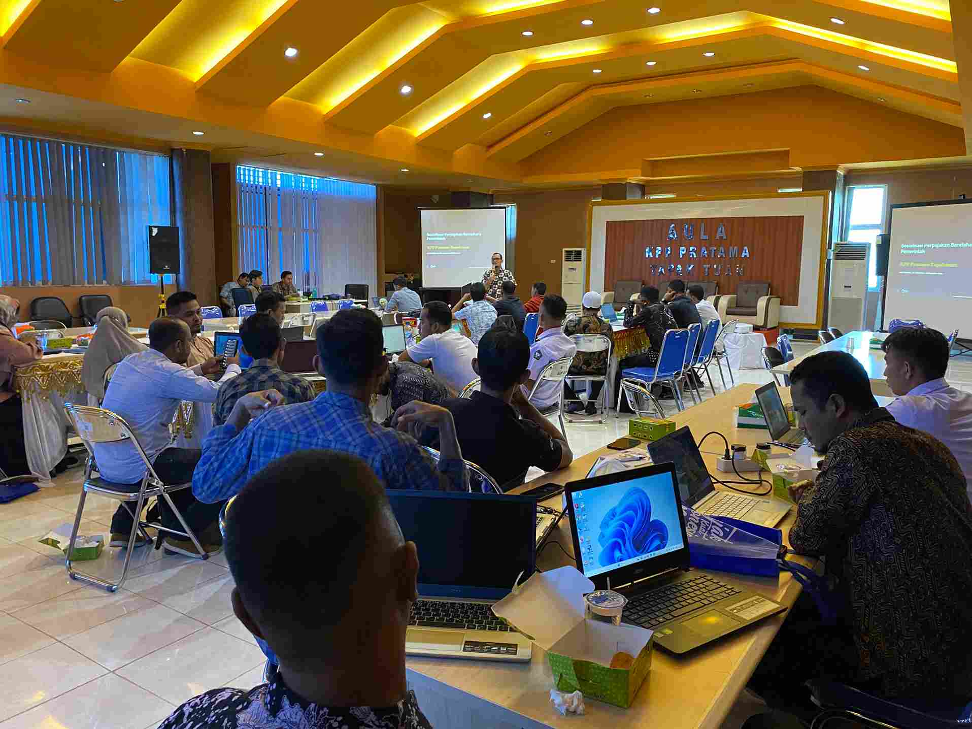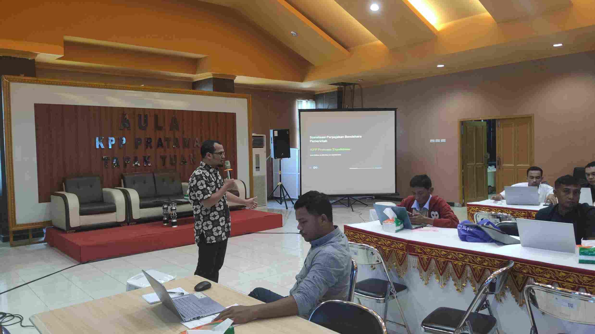 Kantor Pelayanan Pajak (KPP) Pratama Tapaktuan menyelenggarakan kegiatan Sosialisasi Perpajakan dan Bimbingan Teknis (Bimtek) Pelaporan SPT Masa dengan e-Bupot Unifikasi Instansi Pemerintah (Jumat, 4/8). Acara ini berlangsung selama lima hari (31 Juli s.d. 4 Agustus 2023) di Aula Lantai 3 KPP Pratama Tapaktuan, Aceh.