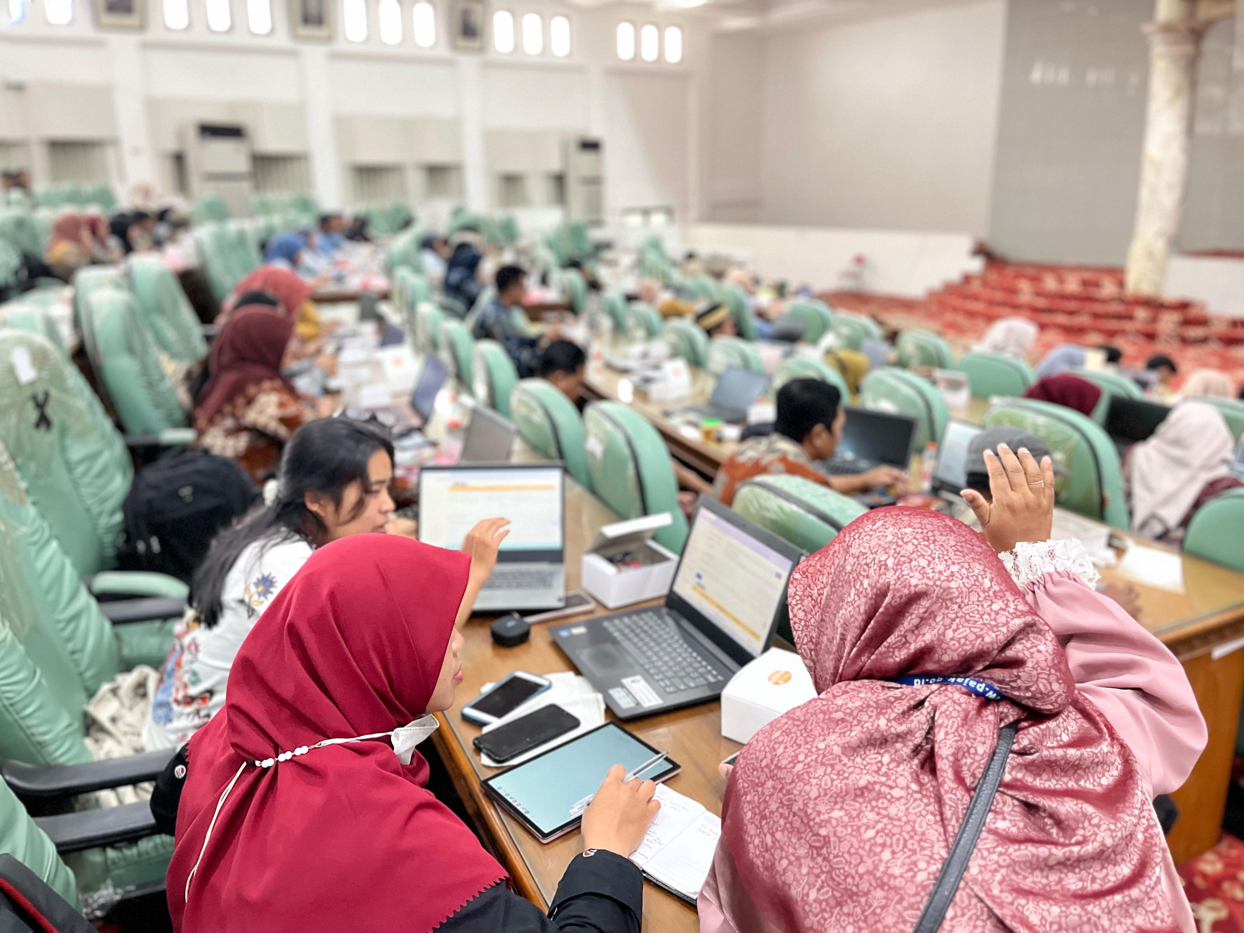 Para bendahara desa telah membawa dan menyiapkan laptop untuk mempelajari aplikasi Coretax DJP yang diakses pada laman https://coretaxdjp.pajak.go.id. Satriya menjelaskan tentang cara login, pengenalan menu Coretax, skema role akses, sertifikat elektronik, dan kode otorisasi DJP.