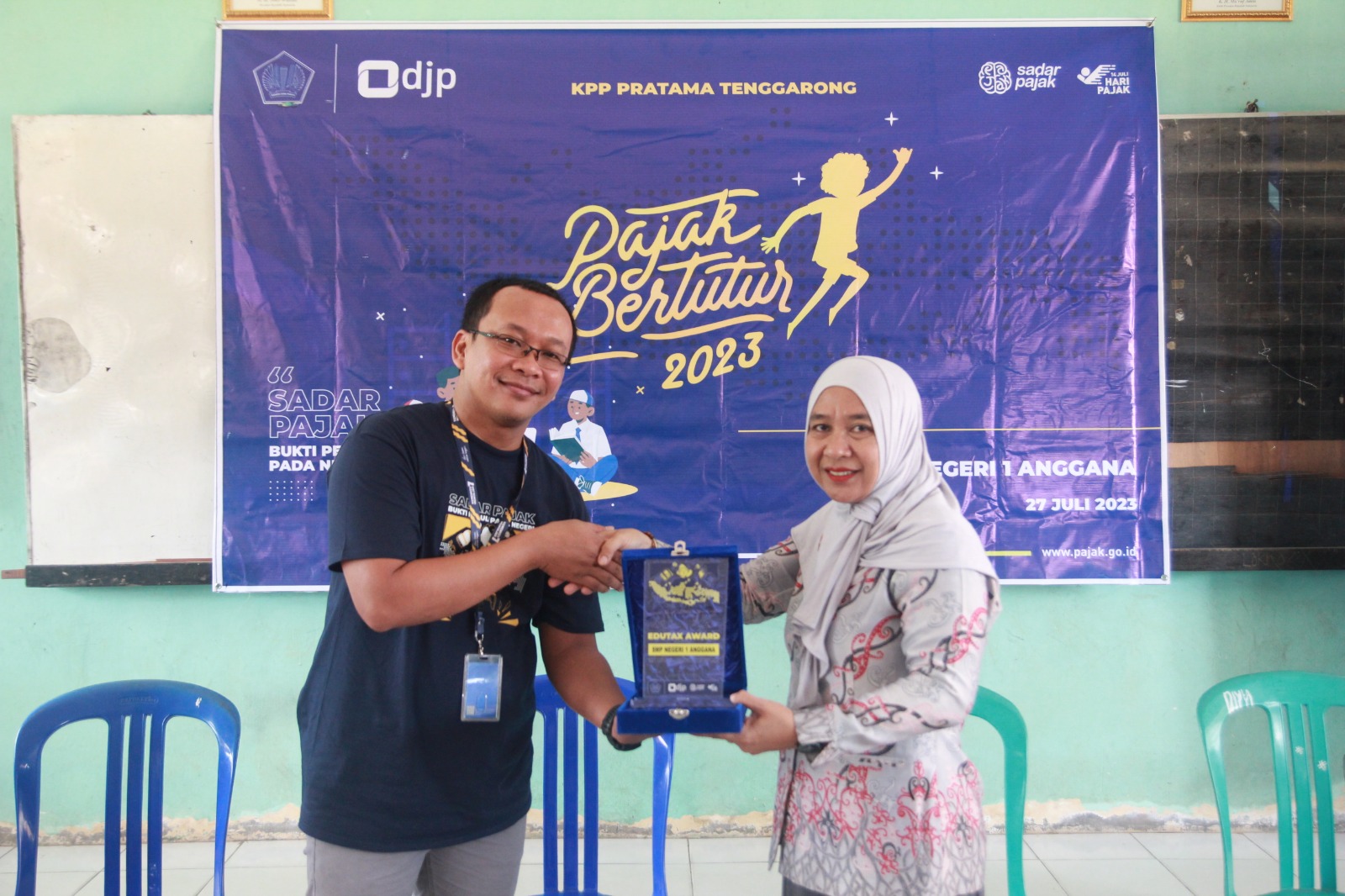 Kantor Pelayanan Pajak (KPP) Pratama Tenggarong telah melaksanakan Pajak Bertutur 2023 di salah satu ruangan Sekolah Menengah Pertama (SMP) Negeri 1 Anggana, Kab. Kutai Kartanegara (Kamis, 27/7). Acara ini dihadiri oleh 31 siswa-siswi kelas IX SMPN 1 Anggana.
