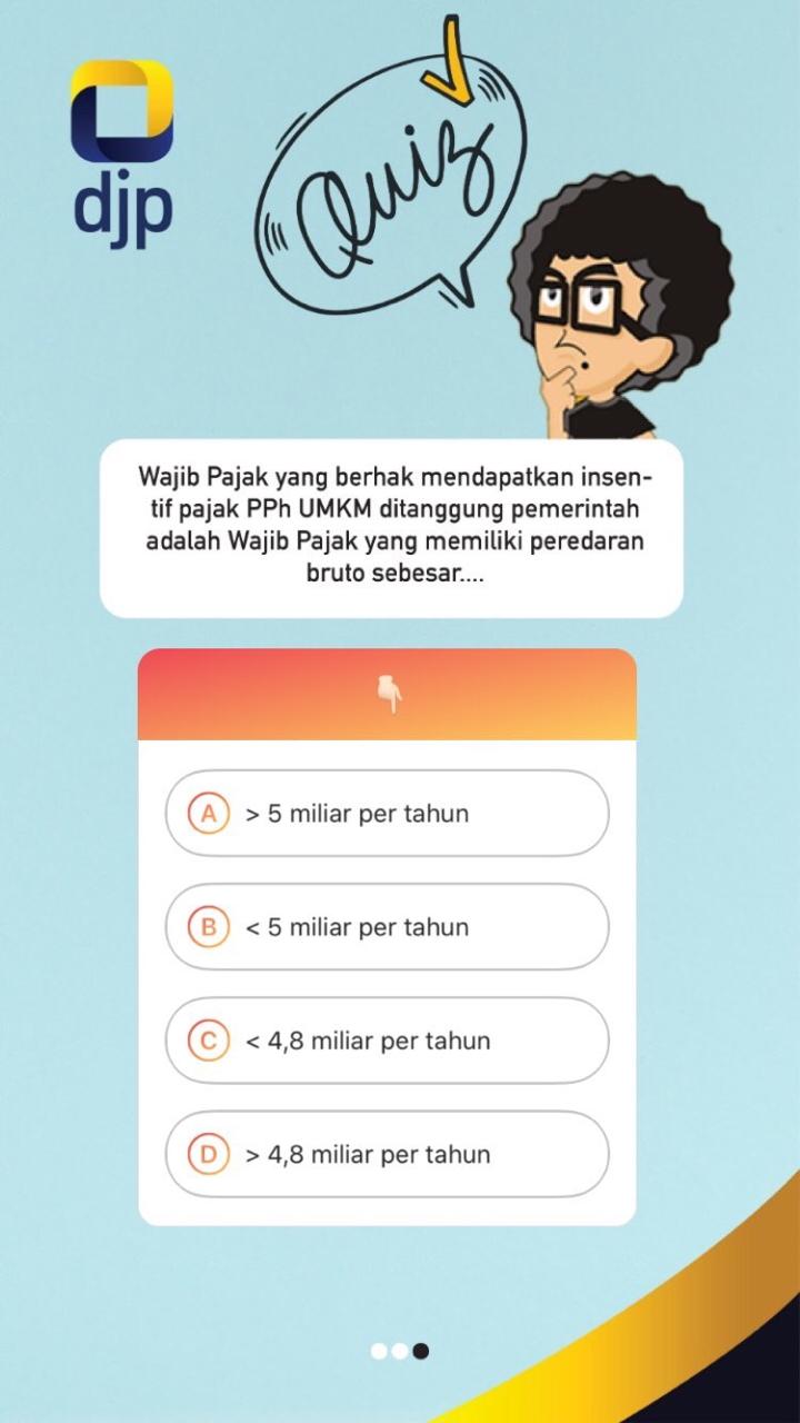 Kuis ini diadakan dengan tujuan agar semakin banyak wajib pajak yang mengetahui akan Insentif Pajak dan segera memanfaatkannya, mengingat pemanfaatannya tinggal 3 bulan lagi.