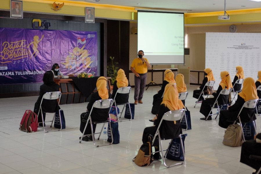 Kantor Pelayanan Pajak (KPP) Pratama Tulungagung menyelenggarakan Pajak Bertutur tahun 2021 secara langsung di Aula KPP Pratama Tulungagung, Kabupaten Tulungagung (Rabu, 25/8).