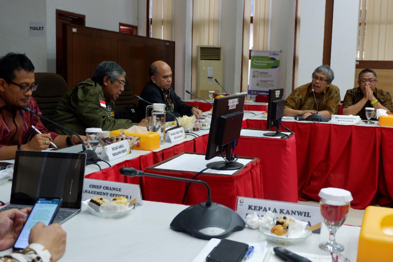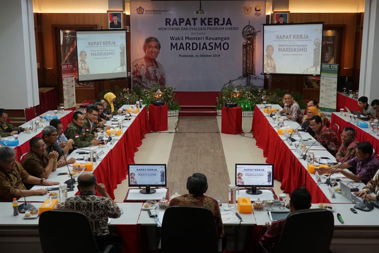Wakil Menteri Keuangan Republik Indonesia Mardiasmo mempimpin Rapat Kerja Monitoring dan Evaluasi Program Sinergi di Aula Kantor Wilayah DJP Kalimantan Barat, Pontianak (Jumat,11/10).