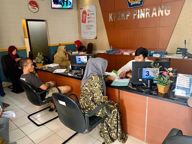 Antusiasme wajib pajak dalam menjalankan hak dan kewajiban perpajakannya mengalami peningkatan, terlihat dari lonjakan antrean yang terus meningkat. Hal tersebut pun memacu KP2KP Pinrang untuk lebih mengoptimalkan pelayanan. Dengan sigap, para petugas KP2KP Pinrang pun membantu para wajib pajak yang datang langsung ke KP2KP Pinrang.