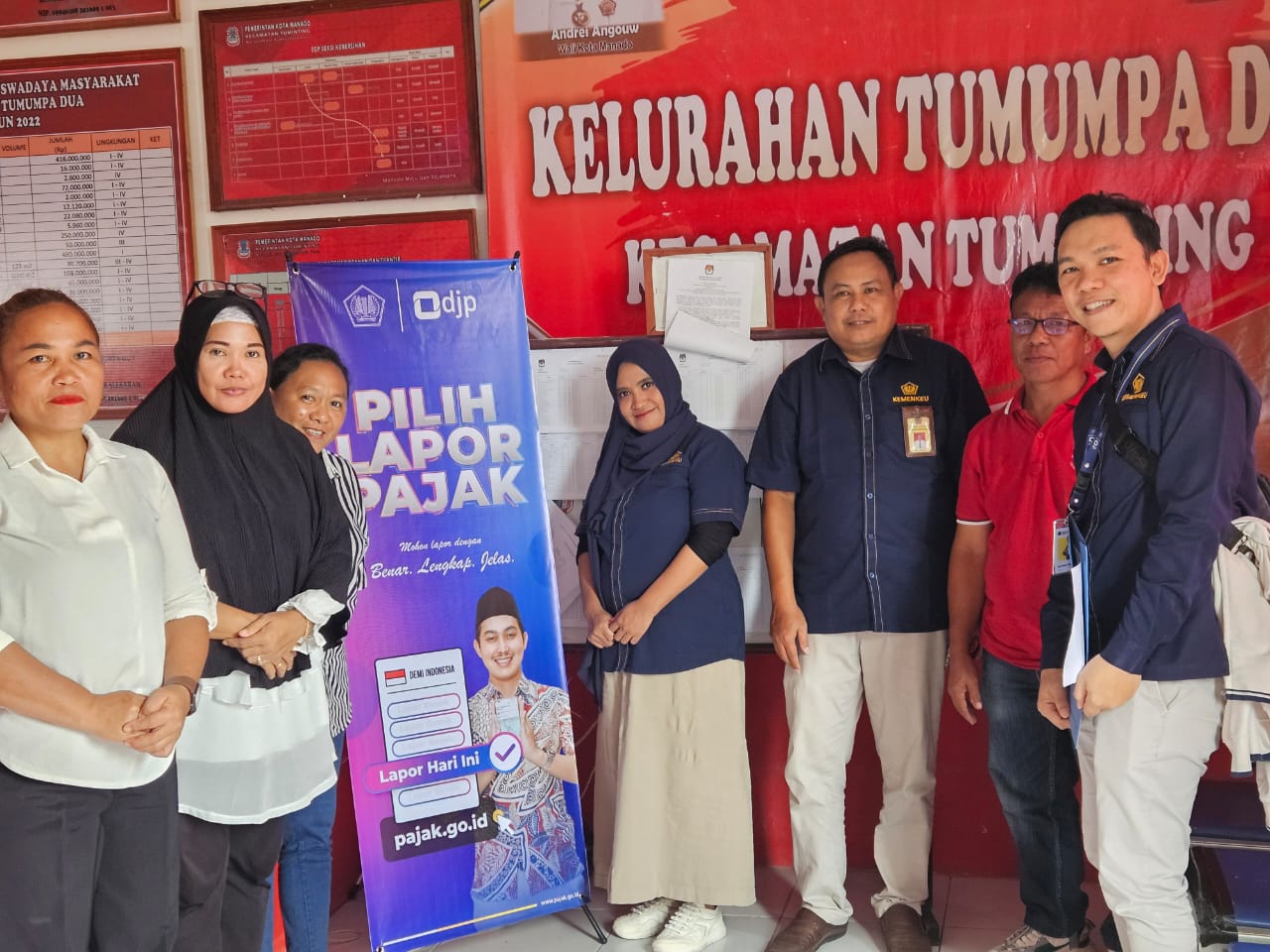 Kantor Pelayanan Pajak (KPP) Pratama Manado mengunjungi berbagai kantor kelurahan untuk meningkatkan kepatuhan wajib pajak. Beberapa kantor yang dikunjungi di antaranya Kantor Kelurahan Titiwungen Utara, Kantor Kelurahan Sario, Kantor Kelurahan Tumumpa Satu, dan Kantor Kelurahan Tumumpa Dua, Kota Manado, Sulawesi Utara (Rabu, 31/1). Kantor kelurahan tersebut diingatkan untuk melaporkan Surat Pemberitahuan (SPT) Tahunan Orang Pribadi tepat waktu sebelum jatuh tempo pada 31 Maret 2024.