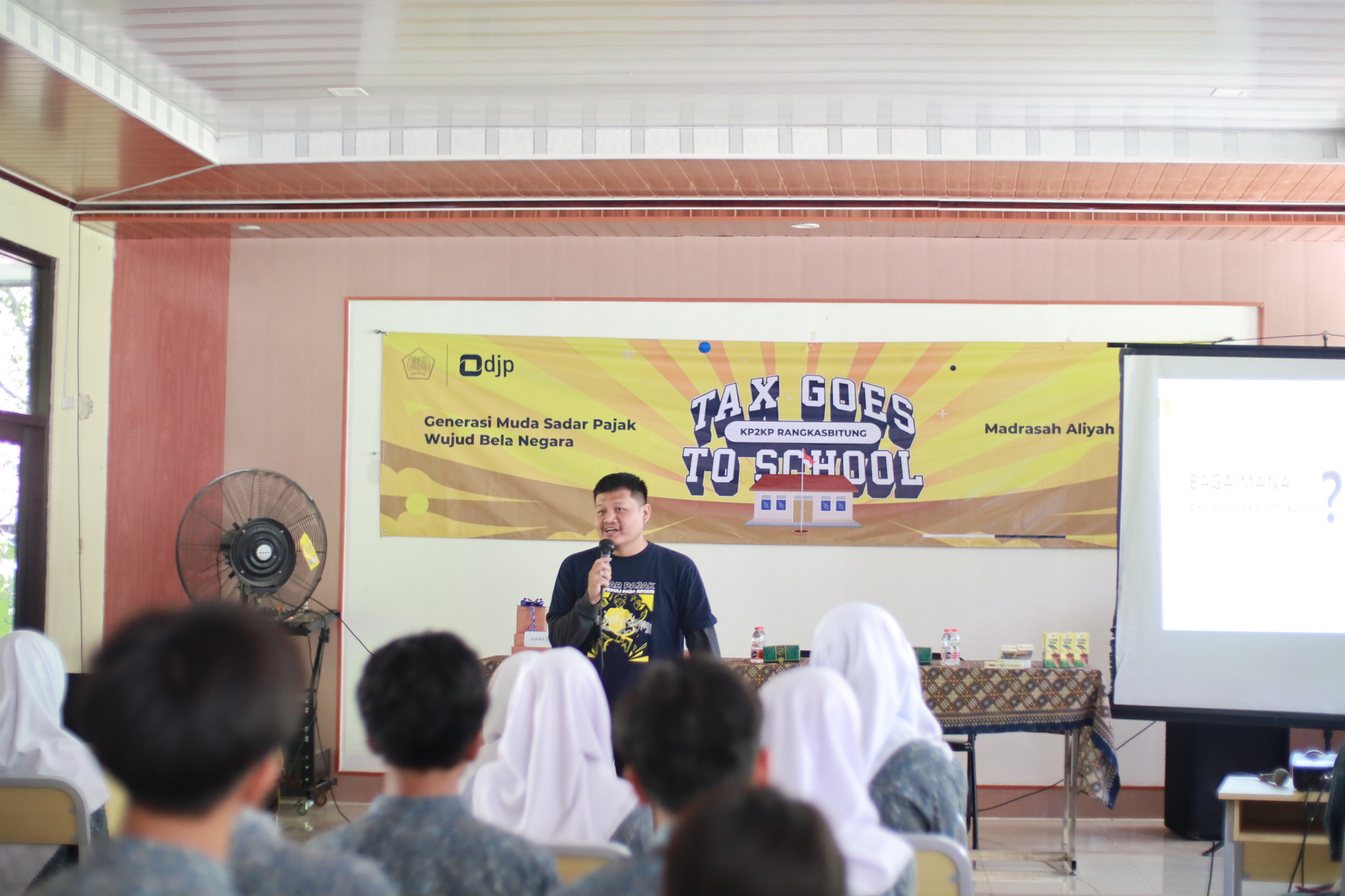 Kantor Pelayanan, Penyuluhan, dan Konsultasi Perpajakan (KP2KP) Rangkasbitung bekerja sama dengan Asisten Penyuluh Kantor Pelayanan Pajak (KPP) Pratama Pandeglang dalam mengadakan kegiatan Tax Goes To School yang diselenggarakan di MAN 1 Lebak, Jalan Pasir Ona, Rangkasbitung Timur, Kecamatan Rangkasbitung, Kabupaten Lebak, Provinsi Banten (Kamis, 31/8).