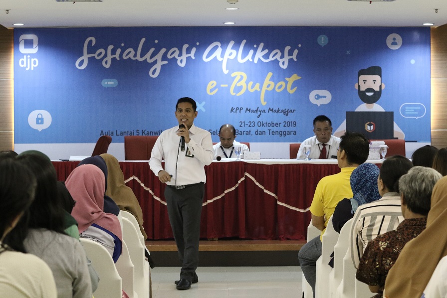 Dalam mengawali implementasi aplikasi E-Bupot, Kantor Pelayanan Pajak (KPP) Madya Makassar menyelenggarakan Sosialisasi Aplikasi e-Bupot pada wajib pajak (Senin, 21/10). Acara ini diselenggarakan di ruang aula lantai lima gedung Kanwil DJP Sulawesi Selatan, Barat dan Tenggara.