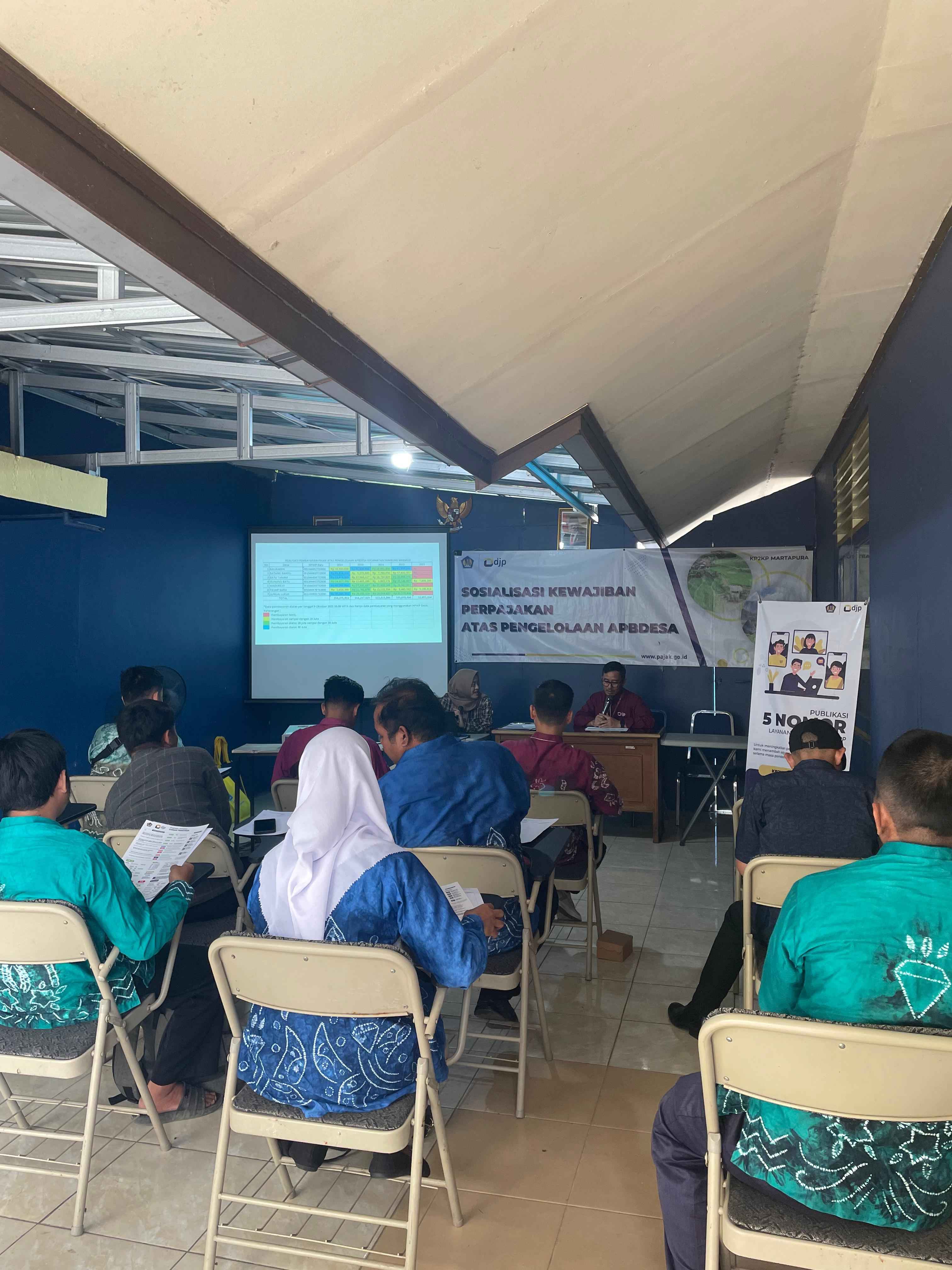 Kantor Pelayanan, Penyuluhan, dan Konsultasi Perpajakan (KP2KP) Martapura kembali menggelar acara monitoring dan evaluasi kewajiban perpajakan atas pengelolaan Anggaran Pendapatan dan Belanja Desa (APBDesa) tahun 2023 sekaligus sosialisasi kewajiban perpajakan atas pengelolaan APBDesa di Aula KP2KP Martapura, Kabupaten Banjar (Kamis, 12/10).