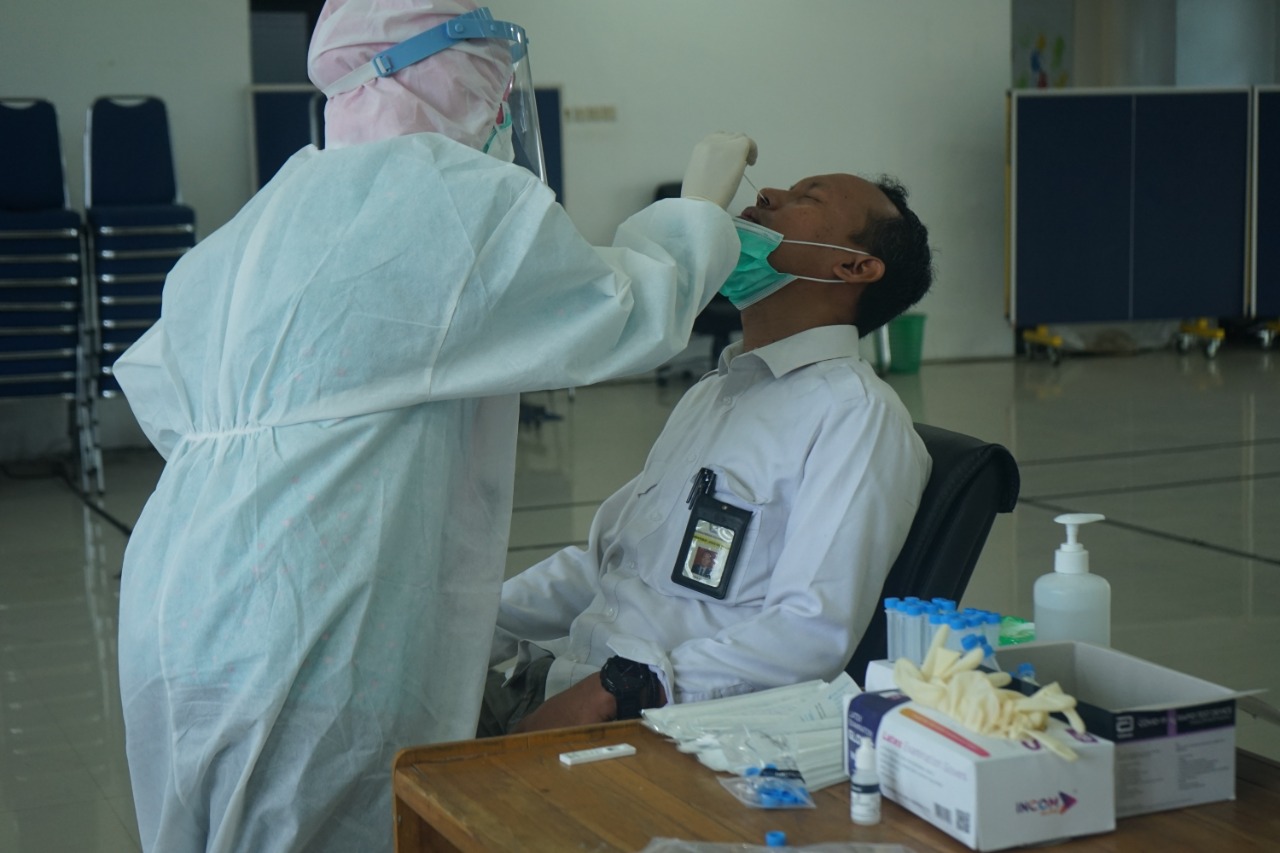 Kantor Pelayanan, Penyuluhan, dan Konsultasi Perpajakan (KP2KP) Unaaha mengikuti kegiatan pelaksanaan tes usap antigen Covid-19 massal di ruang aula Kantor Pelayanan Pajak (KPP) Pratama Kendari, Kota Kendari (Kamis, 21/1). Kegiatan yang juga melibatkan seluruh pegawai KPP Pratama Kendari ini diadakan dengan tujuan untuk memberikan rasa aman bagi petugas pajak dan wajib pajak dalam pelaksanaan pelayanan tatap muka.