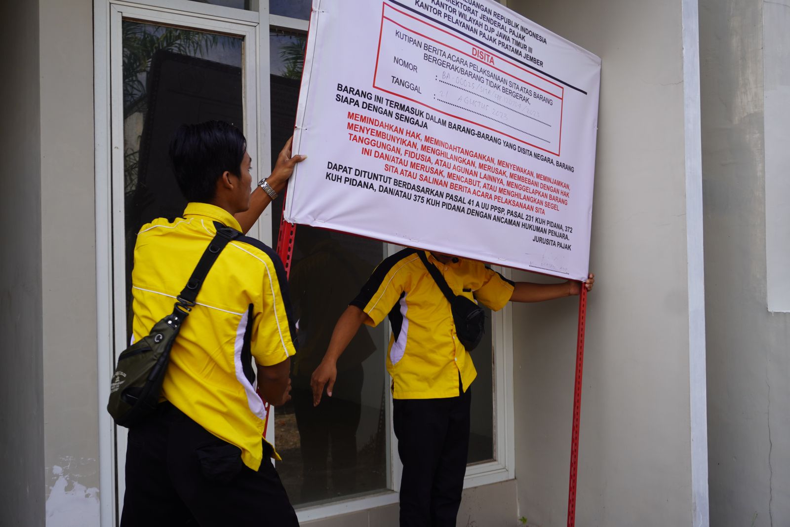 Juru Sita Kantor Pelayanan Pajak (KPP) Pratama Jember melakukan penyitaan aset penunggak pajak pada (Selasa, 21/8). Kegiatan penyitaan ini merupakan bagian dari tindakan penagihan atas tunggakan Wajib Pajak.
