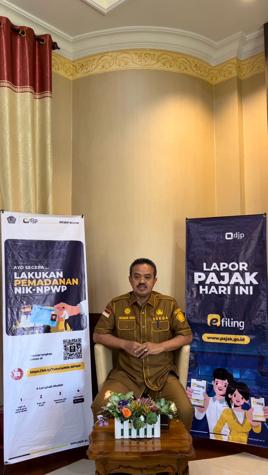 Sekretaris Daerah Kabupaten Pohuwato Iskandar Datau mengajak seluruh wajib pajak, khususnya Wajib Pajak Orang Pribadi di Kabupaten Pohuwato, untuk segera melakukan pelaporan Surat Pemberitahuan (SPT) Tahunan sebelum 31 Maret 2023. Selain itu, Iskandar juga mengajak untuk segera melakukan pemadanan Nomor Induk Kependudukan (NIK) menjadi Nomor Pokok Wajib Pajak (NPWP) sebelum diberlakukan nasional pada 1 Januari 2024 mendatang.