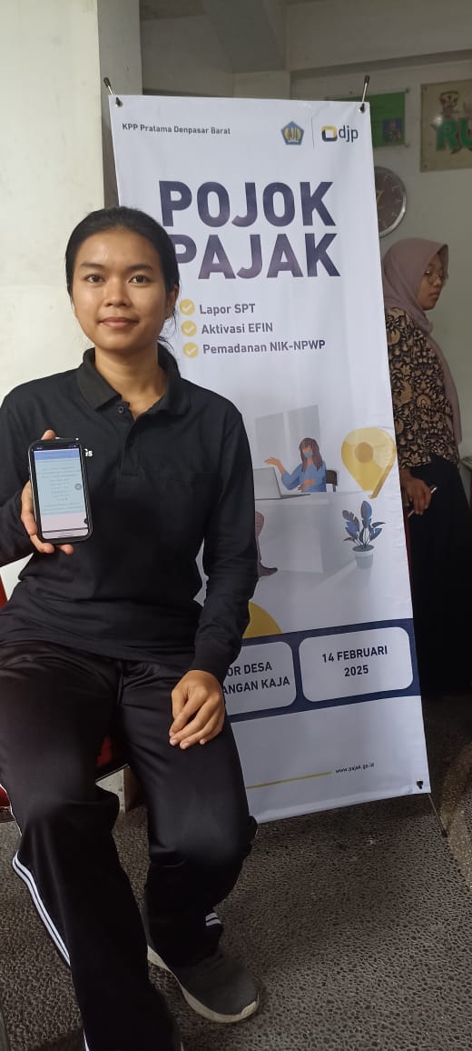 “Saya akan melaporkan Surat Pemberitahuan (SPT) Tahunan, mumpung ada pojok pajak dan masih awal tahun. Lapor SPT ternyata mudah, terima kasih KPP Denpasar Barat,” kata Ni Putu Sundariasih, salah seorang wajib pajak, ketika hadir ke Pojok Pajak Kantor Desa Paguyangan Kaja, Kota Denpasar (Jumat, 14/2). Putu mengaku masih memerlukan bimbingan cara mengisi SPT dan melaporkannya sehingga ia membutuhkan asistensi dalam melaporkan SPT Tahunan.