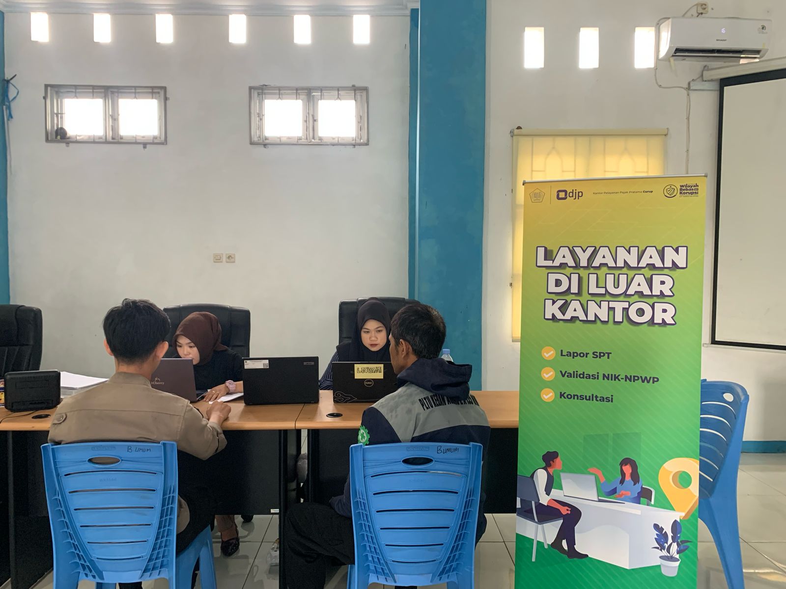 Layanan ini dipandu oleh tim dari KPP Pratama Curup yang terdiri dari Ade Ari Putra, Asisten Penyuluh Pajak KPP Pratama Curup, Frienzaldi Akbar, Pelaksana KPP Pratama Curup, serta dua orang relawan pajak. Mereka memberikan berbagai layanan, termasuk asistensi pengisian SPT Tahunan, konsultasi perpajakan, serta informasi terkait kebijakan terbaru mengenai perpajakan.