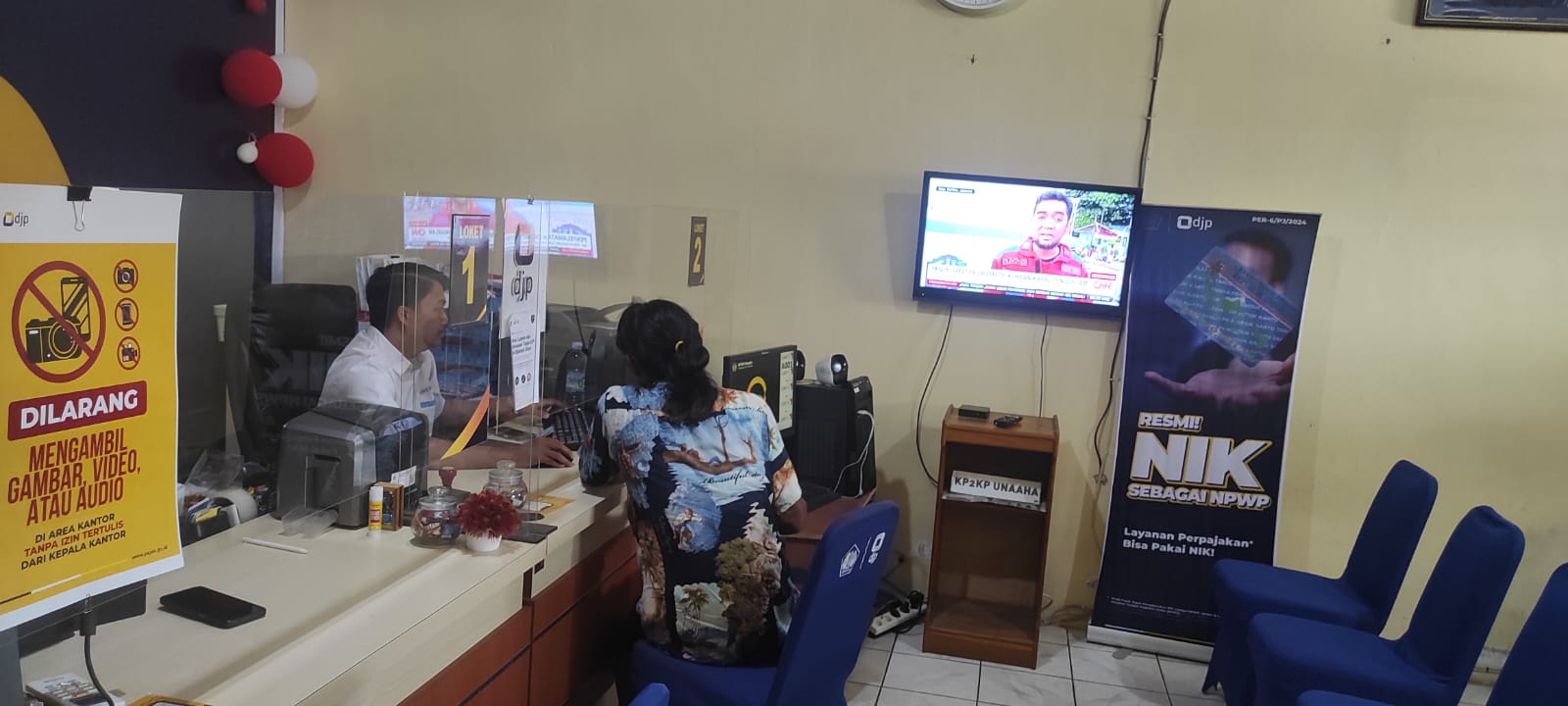 Kantor Pelayanan, Penyuluhan, dan Konsultasi Perpajakan (KP2KP) Unaaha menerima kunjungan seorang Wajib Pajak (WP) Orang Pribadi asal Desa Nopoosi, Kecamatan Onembute, Kabupaten Konawe. Ia disambut oleh petugas KP2KP Unaaha Kharisma di Tempat Pelayanan Terpadu (TPT) KP2KP Unaaha, Jalan Diponegoro No 148, Kelurahan Tuoy, Kecamatan Unaaha, Kabupaten Konawe (Senin, 14/10).
