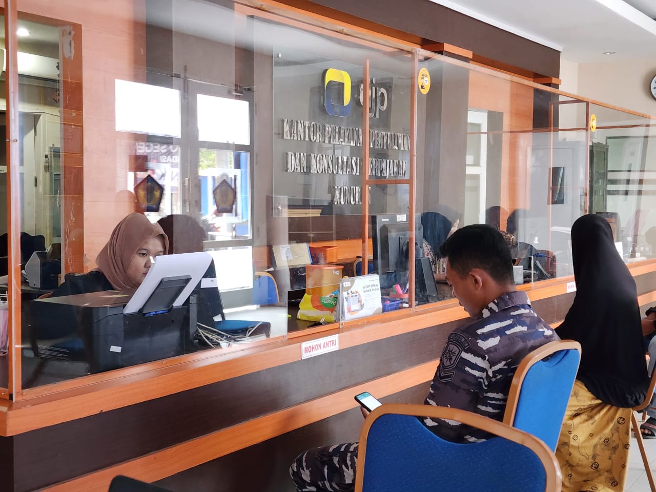 Petugas Tempat Pelayanan Terpadu (TPT) mengecek terlebih dahulu syarat kelengkapan pembuatan NPWP yang dibawa oleh anggota Lanal Nunukan yaitu KTP dan KK. Setelah memastikan berkas lengkap, petugas TPT kemudain mengarahkan anggota Lanal Nunukan untuk menemui petugas helpdesk guna melanjutkan proses pendaftaran NPWP.
