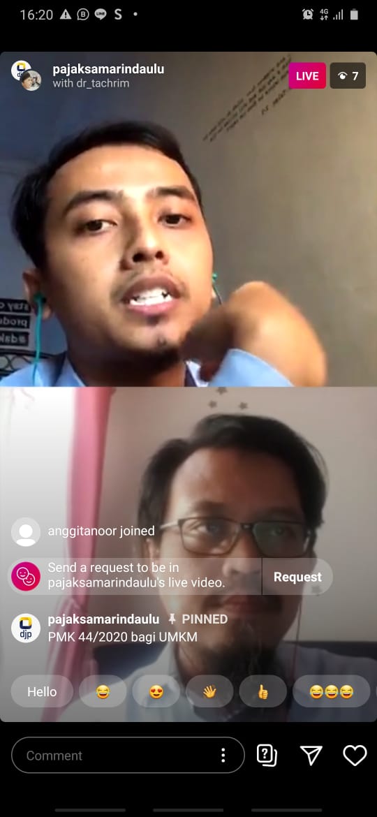 Kantor Pajak Samarinda Ulu mengadakan sosialisasi Insentif Pajak bagi WP UMKM yang terdampak Covid-19 melalui live Instagram akun KPP Pratama Samarinda Ulu @pajaksamarindaulu (Rabu, 13/5). Kegiatan ini diikuti oleh lebih dari 30 Wajib Pajak KPP Pratama Samarinda Ulu.