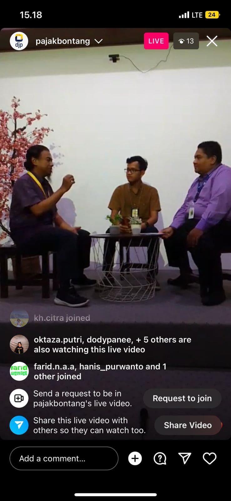 Narasumber pada Live Instagram kali ini adalah Heryoni Ramadhani, Nanang Maulana, dan Afif Abdur Rahman sebagai tim penyuluh dari KPP Pratama Bontang. Live ini berlangsung dari jam 15.00 WITA.