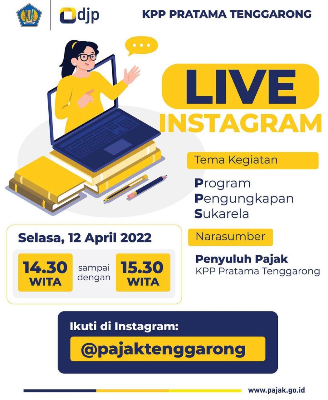 Tim Fungsional Penyuluh Kantor Pelayanan Pajak (KPP) Pratama Tenggarong menyiarkan secara langsung (Live) Instagram mengusung tema Program Pengungkapan Sukarela (PPS) melalui akun instagram @pajaktenggarong di Kota Samarinda (Selasa, 12/4).