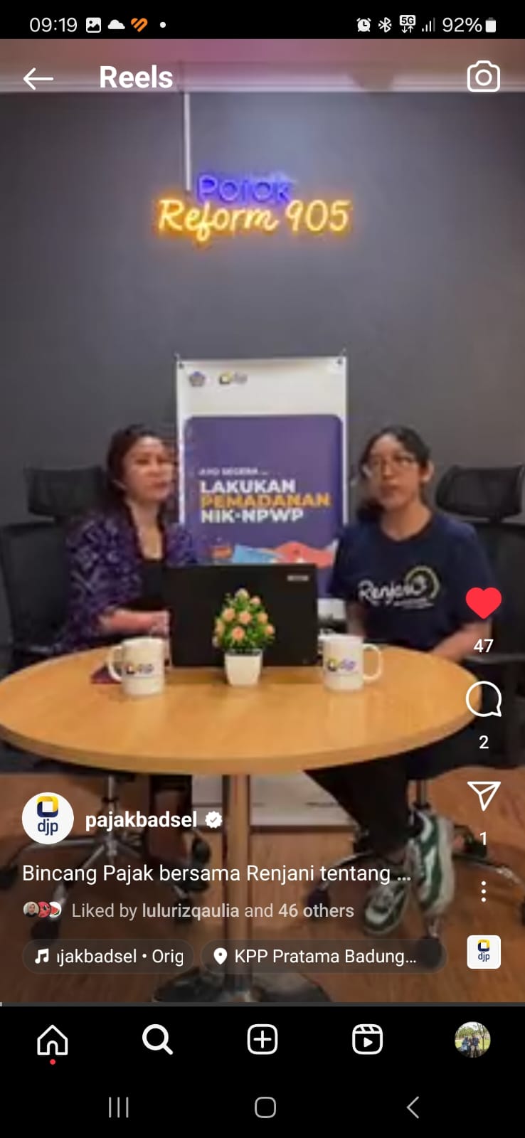Kantor Pelayanan Pajak (KPP) Pratama Badung Selatan mengadakan edukasi dengan tema Pelaporan SPT Tahunan Orang Pribadi serta Aktivasi EFIN melalui Instagram Live @pajakbadsel di KPP Pratama Badung Selatan, Bali (Selasa, 19/3). Edukasi perpajakan disampaikan oleh Penyuluh Pajak KPP Pratama Badung Selatan Sherley Diana Thandung sebagai pemateri dan Made Nathalia yang merupakan relawan pajak sebagai moderator.