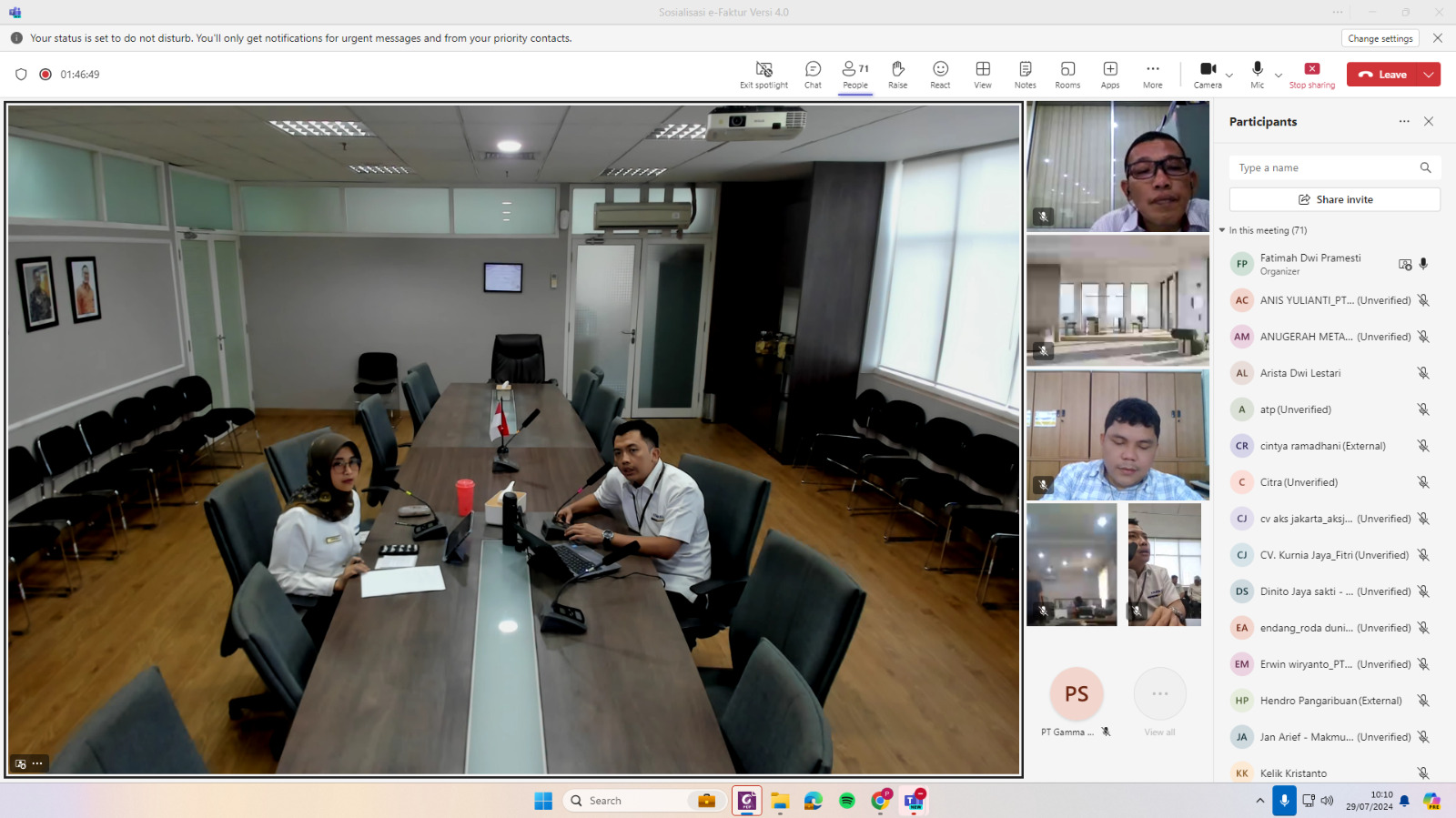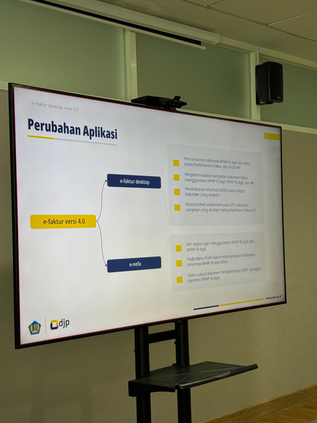 Kantor Pelayanan Pajak (KPP) Madya Jakarta Utara mengadakan sosialisasi terkait update e-Faktur 4.0 yang resmi dirilis Direktorat Jenderal Pajak (DJP) pada 12 Juli 2024 lalu. Hal tersebut ditetapkan melalui PENG-18/PJ.09/2024 tentang Pembaruan Daftar Layanan Perpajakan Berbasis NPWP 16 Digit, NITKU, dan NPWP 15 Digit. Sosialisasi dilaksanakan melalui Ms Teams (Senin, 29/7) di Ruang rapat KPP Madya Jakarta Utara , lantai sembilan Gedung KPP Madya Jakarta, Gambir, Jakarta Pusat.