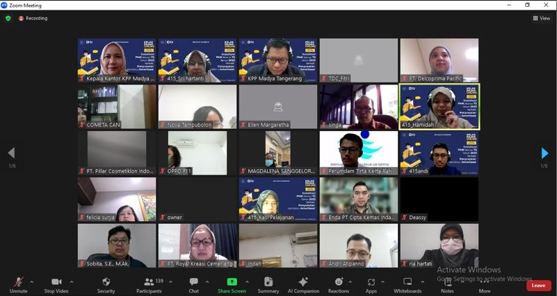 Kantor Pelayanan Pajak (KPP) Madya Tangerang menyelenggarakan kelas pajak dengan tema Peraturan Menteri Keuangan Nomor 136/PMK.03/2023 tentang Tarif Nomor Pokok Wajib Pajak bagi Wajib Pajak Orang Pribadi, Wajib Pajak Badan, dan Wajib Pajak Instansi Pemerintah di Ruang Rapat Cisadane KPP Madya Tangerang, Gedung Menara Top Food, Alam Sutera, Jalan Jalur Sutera Barat No.3, RT.003/RW.006, Panunggangan Timur, Pinang, Kota Tangerang, Banten (Rabu, 17/1).