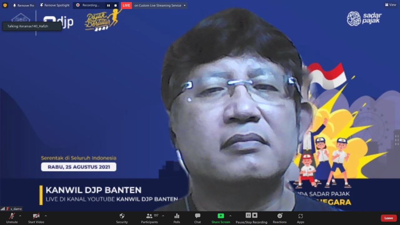 Kantor Wilayah Direktorat Jenderal Pajak (Kanwil DJP0 Banten melaksanakan Pajak Bertutur 2021 bersama mahasiswa dari tax center di Provinsi Banten secara virtual di Serang (Rabu, 25/8). Pajak Bertutur merupakan salah satu kegiatan untuk menyukseskan program Inklusi Kesadaran Pajak milik DJP yang bertujuan untuk menyampaikan arti pentingnya pajak bagi NKRI.