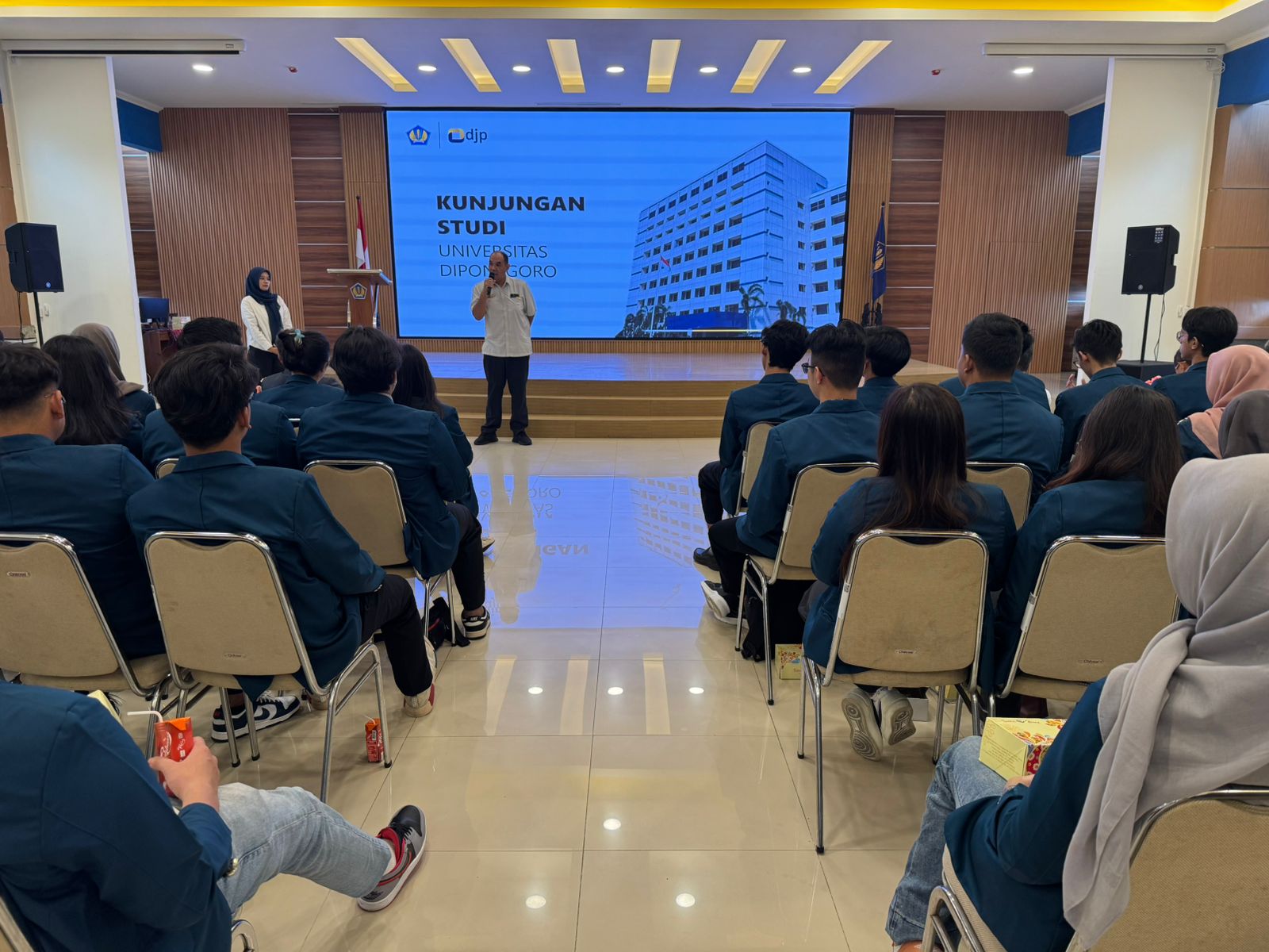 Fakultas Ekonomika dan Bisnis (FEB) Universitas Diponegoro (Undip) melaksanakan kunjungan study ke Kantor Wilayah (Kanwil) Direktorat Jenderal Pajak (DJP) Jawa Tengah I di Kota Semarang (Senin, 3/2). Kegiatan ini bertujuan untuk memberikan pengalaman praktis kepada mahasiswa FEB Undip tentang profil, tugas, dan fungsi Kanwil DJP Jateng I.
