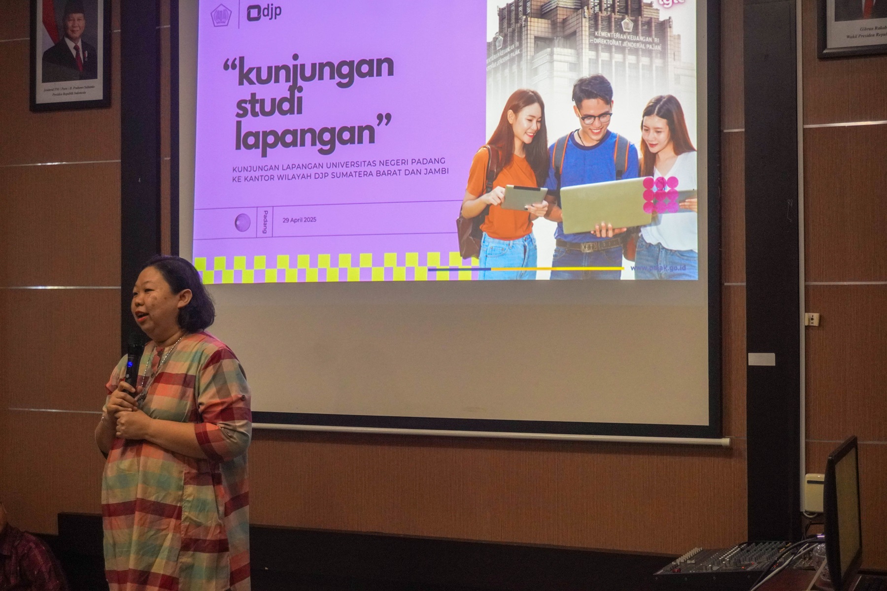 Kunjungan ini disambut langsung oleh Kepala Kanwil DJP Sumatera Barat dan Jambi, yang menyatakan apresiasinya terhadap inisiatif mahasiswa dan dosen pembimbing untuk memperdalam pemahaman tentang sistem perpajakan secara langsung di lapangan.