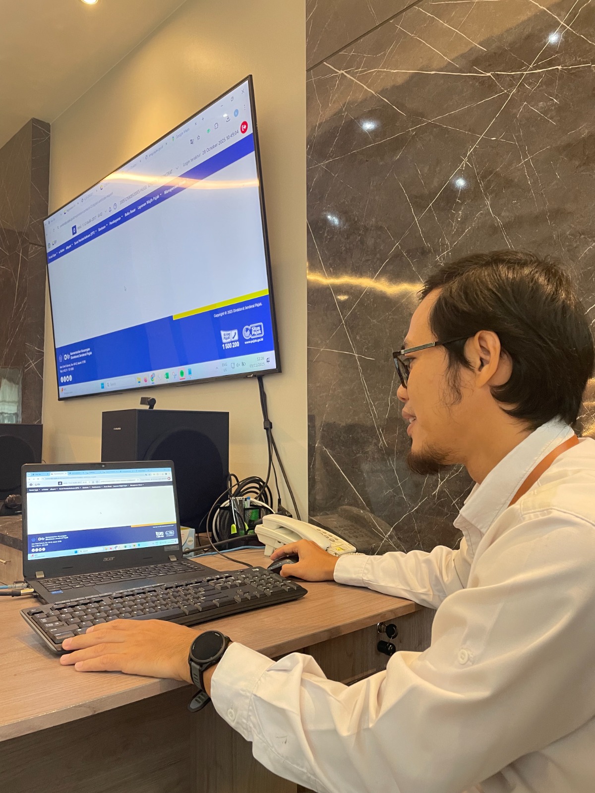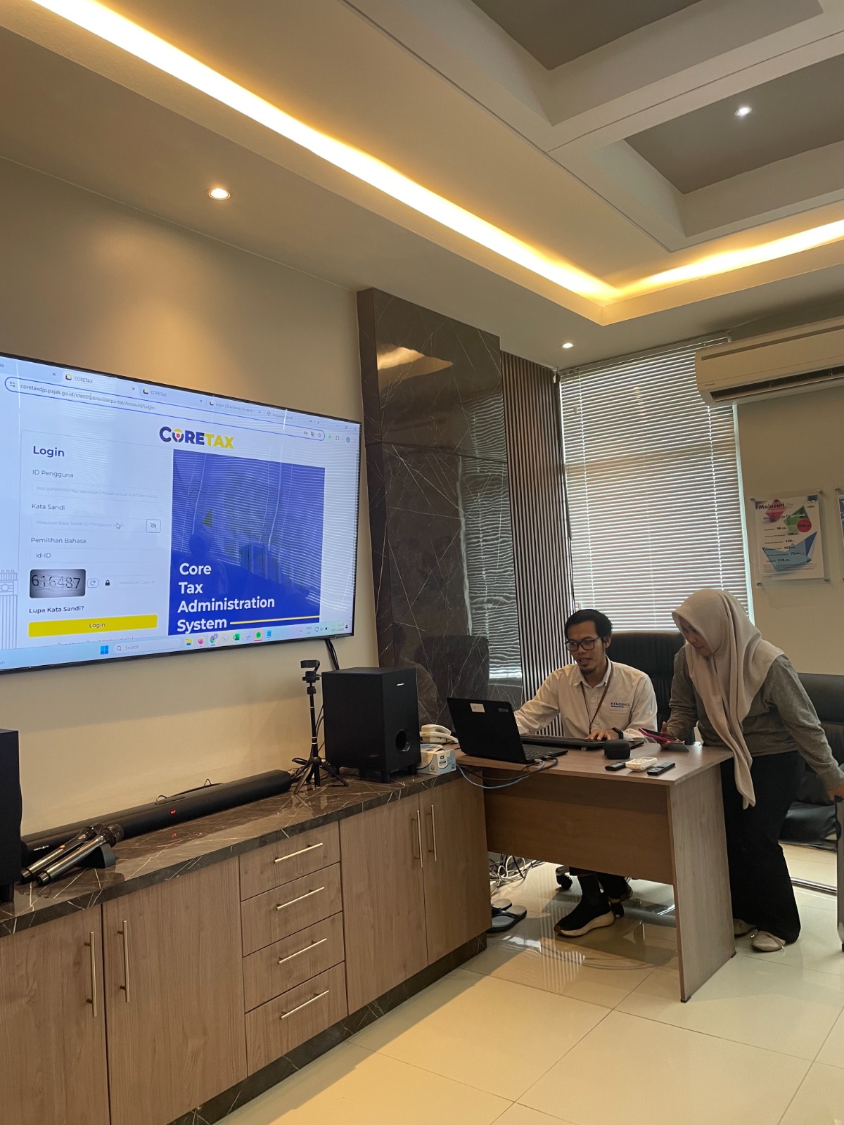 Dalam kegiatan ini, para mahasiswa mendapat bimbingan langsung dari tim penyuluh KPP Pratama Purbalingga. Narasumber pertama, Huge Jendra selaku Pelaksana KPP Pratama Purbalingga, memberikan pengarahan teknis terkait tata cara pendaftaran NPWP secara online melalui sistem Coretax DJP di laman coretaxdjp.pajak.go.id.
