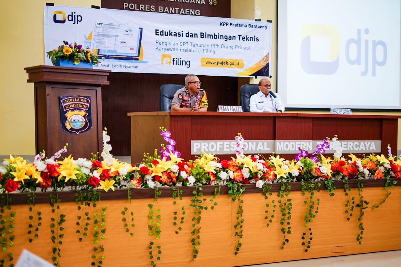 Dalam rangka mengedukasi anggota kepolisian di lingkungan Kepolisian Resor (Polres) Bantaeng, Kantor Pelayanan Pajak (KPP) Pratama Bantaeng mengadakan kegiatan "Bimbingan Teknis Pengisian SPT Tahunan PPh Orang Pribadi Karyawan melalui e-Filing" (Kamis, 13/2). Kegiatan ini digelar di Ruang Aula Endra Dharmalaksana 99 Polres Bantaeng dengan dihadiri oleh anggota anggota polisi di lingkungan Polres Bantaeng.