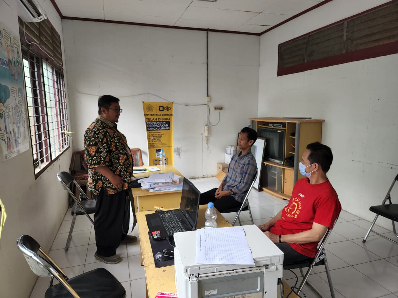Kantor Pelayanan Pajak (KPP) Pratama Bontang memberikan layanan asistensi pelaporan Surat Pemberitahuan (SPT) Tahunan Wajib Pajak Orang Pribadi Usahawan dan Wajib Pajak Badan di wilayah Kecamatan Sangkulirang, Sandaran, dan Kaliorang, Kab. Kutai Timur (Kamis, 11/08).