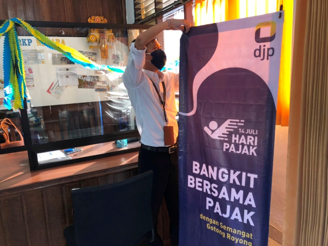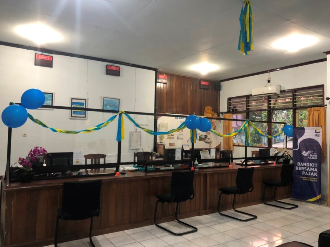 Dalam rangka memeriahkan Hari Pajak yang jatuh pada tanggal 14 Juli, Kantor Pelayanan, Penyuluhan, dan Konsultasi Perpajakan (KP2KP) Negara melakukan penghiasan Tempat Pelayanan Terpadu (TPT) dan area lainnya di KP2KP Negara (Senin, 13/7).
