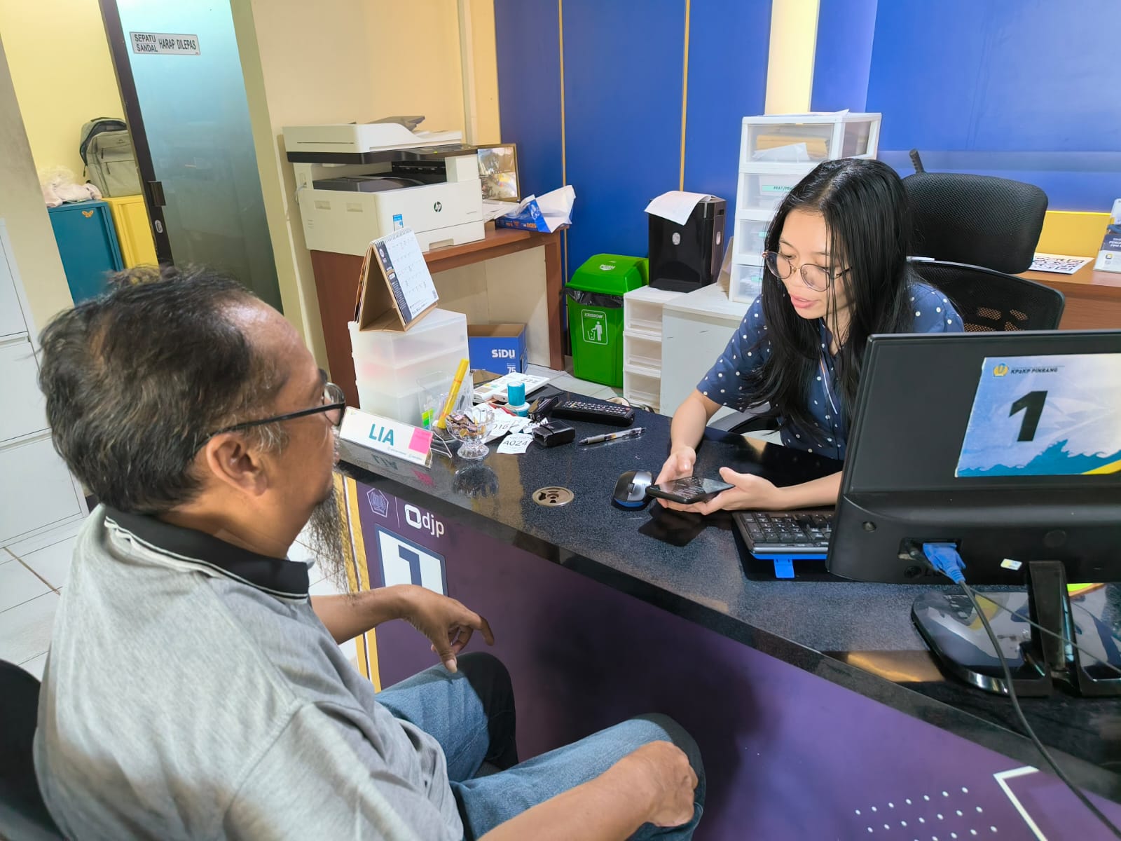 Untuk mendukung implementasi Coretax DJP, Kantor Pelayanan, Penyuluhan, dan Konsultasi Perpajakan (KP2KP) Pinrang melaksanakan edukasi terkait sistem Coretax DJP kepada salah satu wajib pajak di Tempat Pelayanan Terpadu (TPT) KP2KP Pinrang, Sulawesi Selatan (Selasa, 22/4). AJ, satu wajib pajak yang berkunjung ke KP2KP Pinrang, meminta arahan untuk membuat akun Coretax pribadinya. Petugas Pajak, Lia dengan sigap memberikan arahan kepada AJ. Lia lalu menanyakan apakah wajib pajak tersebut sudah memiliki DJP Online.