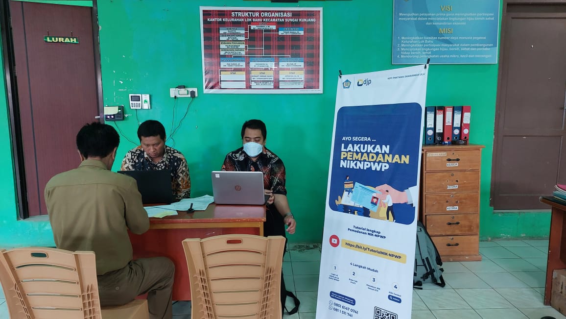 Kantor Pelayanan Pajak Pratama Samarinda Ulu menyelenggarakan kegiatan pojok pajak dalam rangka pelaporan SPT Tahunan dan pemadanan NIK-NPWP di Kelurahan Lok Bahu, Kecamatan Sungai Kunjang, Kota Samarinda (Selasa, 28/2).