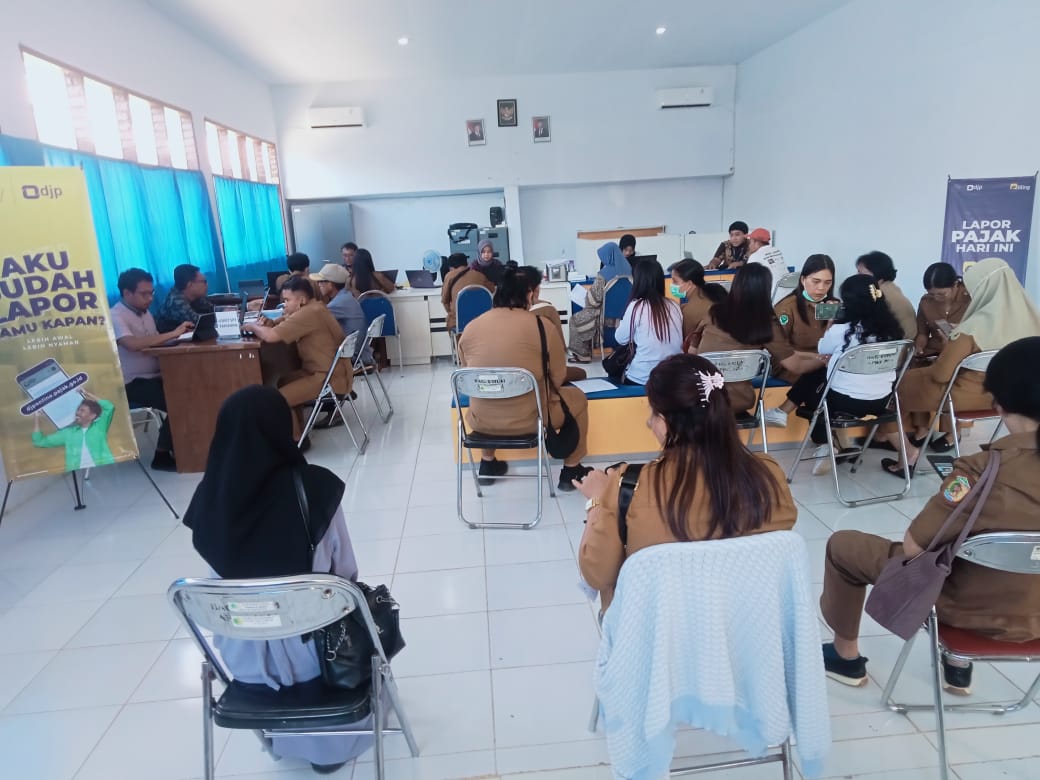 Wajib pajak yang memadati pos pajak ini adalah para wajib pajak yang bekerja sebagai Aparatur Sipil Negara (ASN) dan Pegawai Pemerintah dengan Perjanjian Kerja (PPPK) yang ingin menunaikan kewajiban pelaporan.