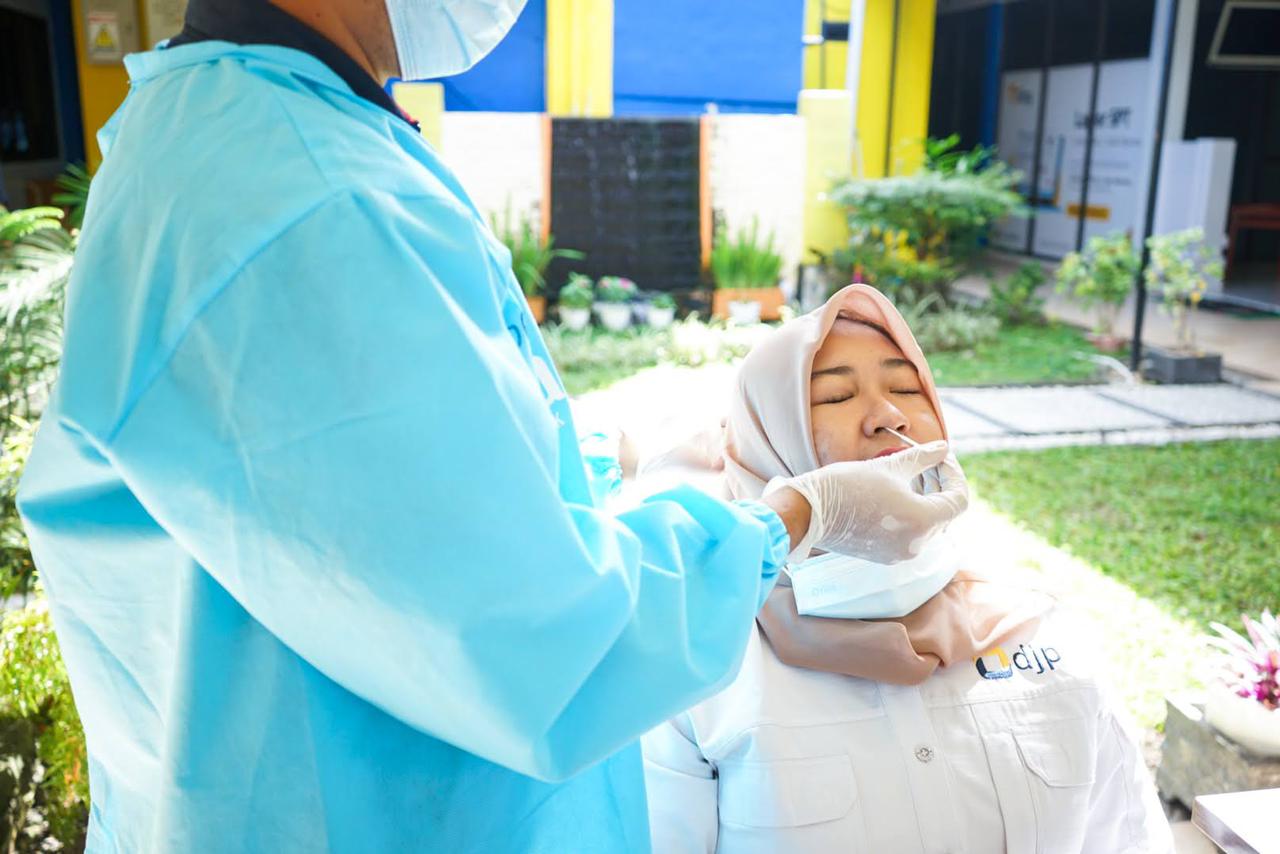 Kantor Pelayanan Pajak (KPP) Pratama Bantaeng melaksanakan kegiatan tes usap antigen bagi seluruh pegawai di area terbuka taman KPP Pratama Bantaeng, Kabupaten Bantaeng (Kamis, 20/5).