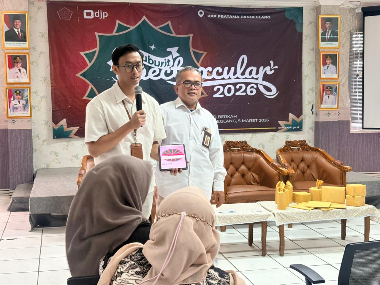 Dalam kampanye simpatik bertajuk Ngabuburit Spectaxcular, Kantor Pelayanan Pajak (KPP) Pratama Pandeglang memberikan layanan asistensi pelaporan surat pemberitahuan (SPT) tahunan dengan menggunakan Coretax DJP bernuansa Ramadan di aula RSUD Berkah, Pandeglang (Kamis, 05/03).