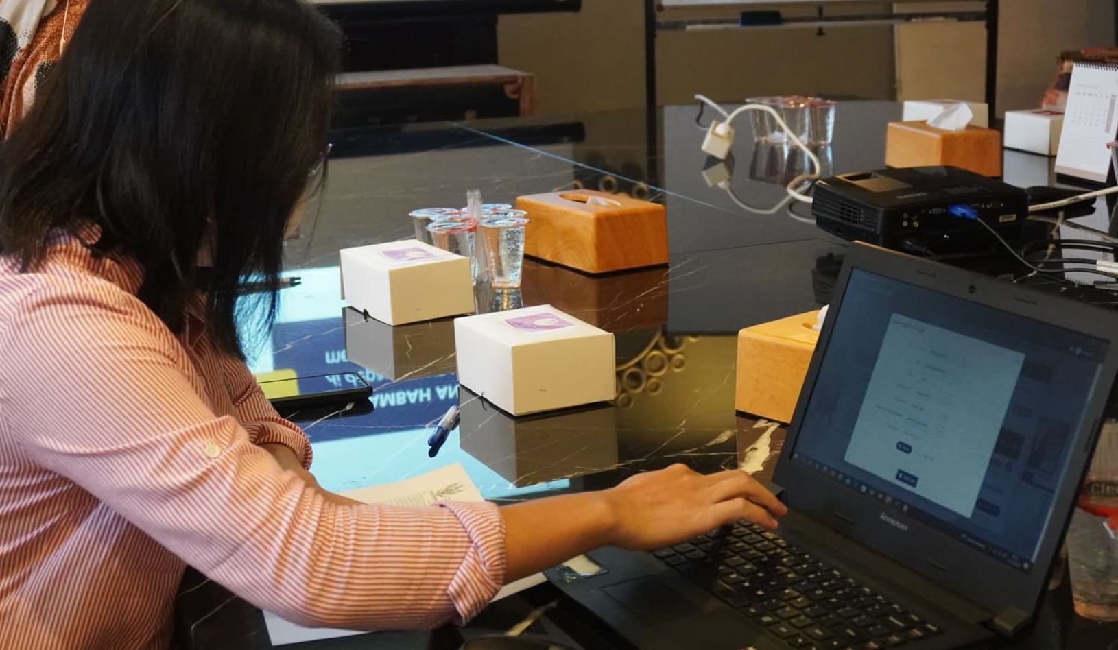 Diakhir acara, Intan dan Fida memandu para peserta untuk melakukan pemutakhiran data mandiri sekaligus meminta mereka turut membantu proses pemutakhiran data karyawan Natasha Group yang tersebar di seluruh Indonesia.