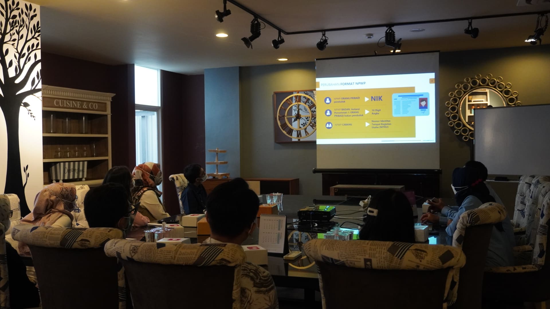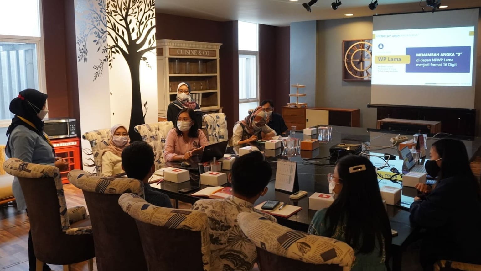 Kantor Pelayanan Pajak (KPP) Pratama Yogyakarta kembali melaksanakan sosialisasi Peraturan Menteri Keuangan Nomor 112/PMK.03/2022 tentang Nomor Pokok Wajib Pajak (NPWP) Bagi Wajib Pajak Orang Pribadi, Wajib Pajak Badan, dan Wajib Pajak Instansi Pemerintah sekaligus melakukan asistensi pemutakhiran data mandiri kepada perwakilan karyawan Natasha Group di Natans Building Yogyakarta (Rabu, 12/10).