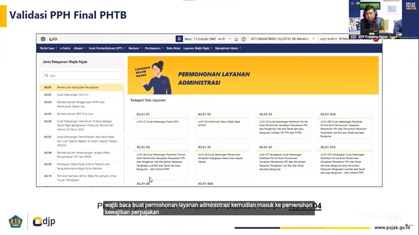 Kantor Pelayanan Pajak (KPP) Pratama Natar mengadakan Bimbingan Teknis (Bimtek) Validasi Surat Keterangan (Suket) Pajak Penghasilan (PPh) Final Pengalihan Hak atas Tanah dan Bangunan (PHTB) melalui Coretax DJP yang dilaksanakan secara daring melalui kanal Zoom Meeting (Jumat, 7/3).