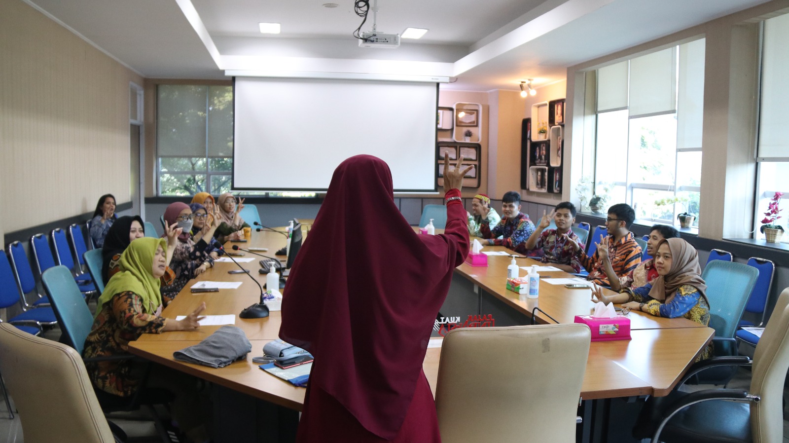 Selama pelatihan, pegawai diajarkan bagaimana cara mengungkapkan salam, sapaan, kalimat singkat, nama hari dan bulan, serta huruf dan angka dalam bahasa isyarat. Selain itu, pegawai berlatih secara berpasangan untuk saling mengajukan dan menjawab pertanyaan sederhana dalam bahasa isyarat, seperti menanyakan nama dan alamat rumah. Terakhir, pegawai berlatih menyanyikan lagu Indonesia Raya menggunakan bahasa isyarat.