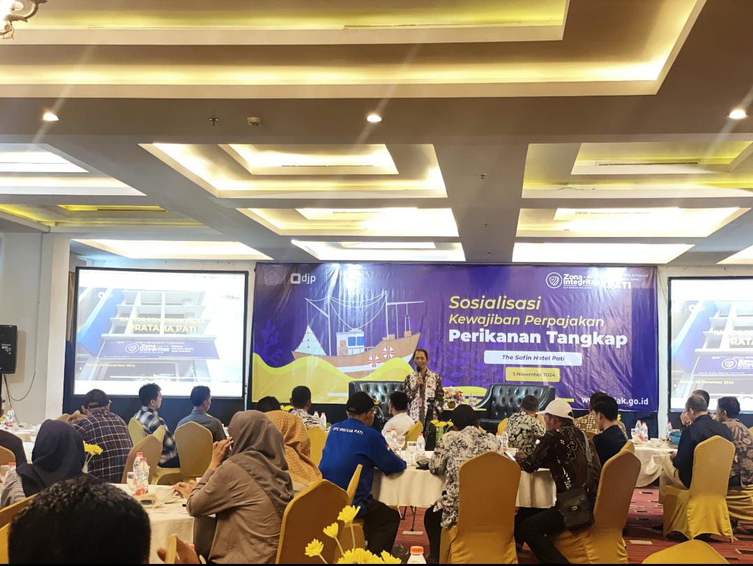 Kantor Pelayanan Pajak (KPP) Pratama Pati mengadakan Sosialiasi Kewajiban Perpajakan Sektor Perikanan Tangkap bertempat di The Safin Hotel Pati, Kab. Pati (Selasa, 5/11). Sosialisasi ini diikuti oleh 40 orang perwakilan dari tiga paguyuban perikanan tangkap yang ada di Kabupaten Pati yaitu Mitra Nelayan Sejahtera (Purse Seine), Asosiasi Nelayan Jaring Cumi Mina Samudra Raya Bersatu, dan Paguyuban Nelayan Mina Santosa (JTB). Turut hadir Ketua Asosiasi Nahkoda Kasban.
