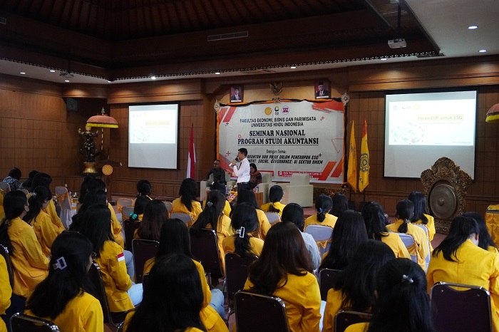 Seminar Nasional Akuntansi diikuti oleh lebih dari tujuh puluh mahasiswa Universitas Hindu Indonesia, dengan narasumber Fungsional Penyuluh Pajak Kanwil DJP Bali, Putu Adi Bayu Suteja Sastra, Kepala Direktorat Litbang, BPK RI dan Anggota Dewan Pembina Nasional IAI, DR. Selvia Vivi Devianti, SE, AK., MSc., MCP, dan Dosen Fakultas Ekonomi Bisnis, dan Pariwisata Universitas dan Kepala Divisi Litbang Lembaga Penelitian dan Pengabdian Masyarakat UNHI Denpasar, Dr. Cokorda Gde Bayu Putra, S.E.,M.Si, CMA., sebagai moderator yang memandu kegiatan Seminar Nasional Akuntansi.