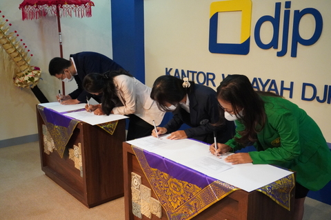 Kantor Wilayah Direktorat Jenderal Pajak (Kanwil DJP) Bali melaksanakan kegiatan pengukuhan serta penyerahan relawan pajak ke Kantor Pelayanan Pajak (KPP) dan Kantor Pelayanan, Penyuluhan, dan Konsultasi Perpajakan (KP2KP) di Aula Kanwil DJP Bali, Denpasar (Jumat, 18/02). Kegiatan pengukuhan ini dihadiri langsung oleh perwakilan dari relawan pajak dan diikuti melalui media zoom meeting oleh para relawan pajak lainnya.