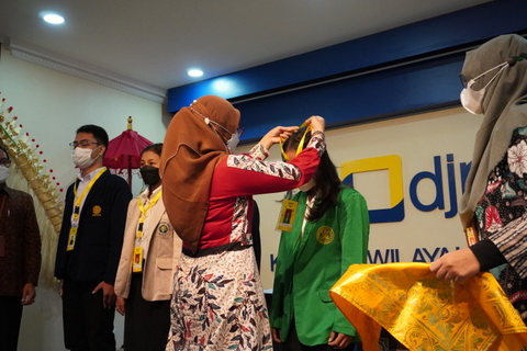 Selanjutnya para relawan pajak diserahkan ke penanggung jawab KPP dan KP2KP untuk dibimbing serta diberikan pembekalan awal sebelum mereka mulai bertugas di masing-masing instansi yang sudah ditetapkan.