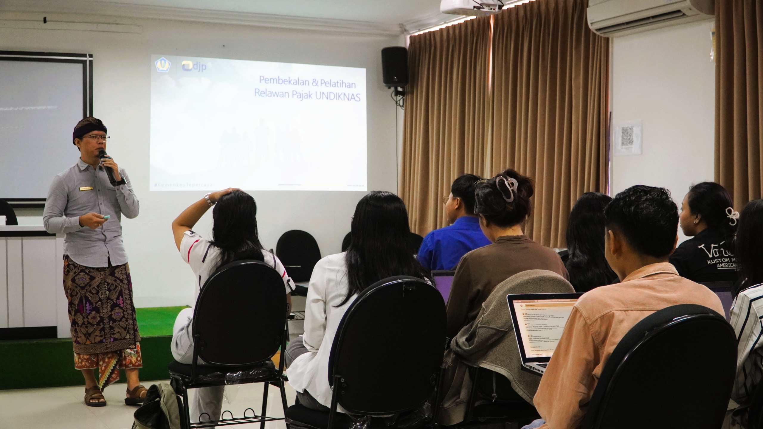 Kantor Wilayah (Kanwil) Direktorat Jenderal Pajak (DJP) Bali mengadakan pelatihan kepada 15 orang Relawan Pajak untuk Negeri (Renjani) tahun 2025 dari Universitas Pendidikan Nasional (UNDIKNAS) yang dimulai dari tanggal 16 Januari 2025 hingga 17 Januari 2025 di Gedung A Lantai 3, Ruang Antonio Gramsci, UNDIKNAS, Kota Denpasar (Kamis, 16/1).