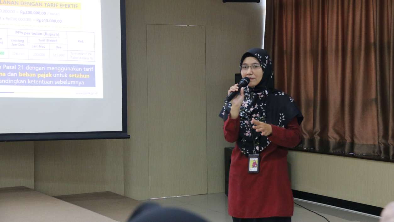 Dihadiri oleh 38 perwakilan wajib pajak badan, kegiatan berlangsung dari pukul 09.00 WITA s.d. 12.00 WITA dengan tujuan memberikan pemahaman bagi wajib pajak bahwa Tarif Efektif Rata-Rata (TER) membagikan kemudahan dalam menghitung PPh Pasal 21 bagi pegawai tetap atau tidak tetap. Selain itu, Ariana juga menyampaikan perubahan aspek-aspek perpajakan pada PPh 21.